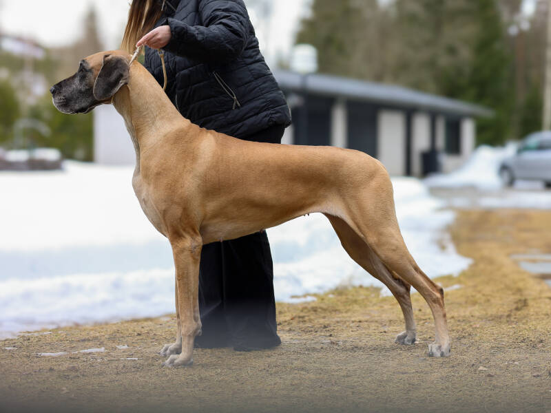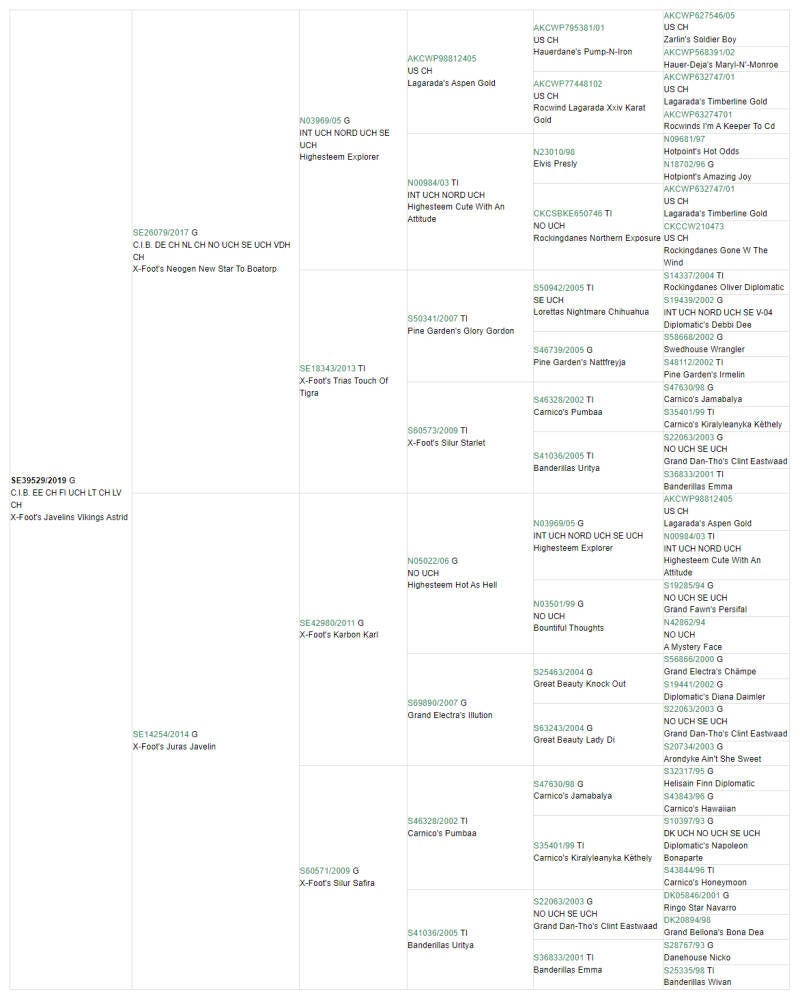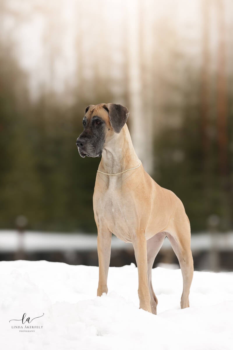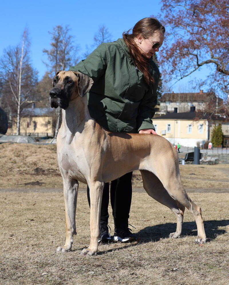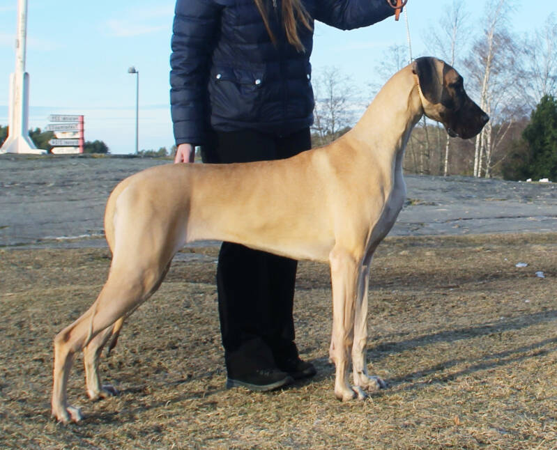 "Erinomaiset mittasuhteet. Elegantti narttu jolla erinomainen pään profiili. Hyvä kallo ja kuono-osa. Kaunismuotoiset tummat silmät. Hyvät korvat. Erinomainen kaula ja ylälinja. Erinomainen eturinta, runko, raajaluusto ja kulmaukset. Tiiviit käpälät. Hyvä häntä. Liikkuu joustavasti erinomaisella askelmitalla, yhdensuuntaisesti edestä ja takaa."